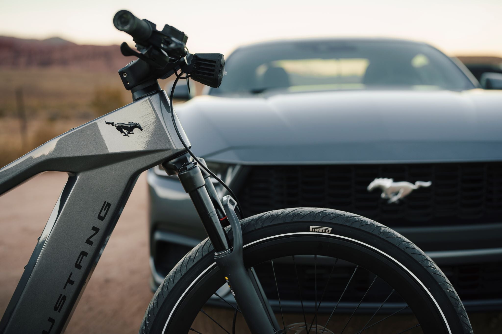The eBike features the iconic Mustang LED Sequential Taillights and an integrated one-piece cockpit cradles a full color display with telemetry graphics inspired by Ford's digital infotainment system.